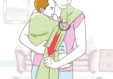 Tighten the rings. If there is excess fabric around the baby’s back and bottom, gather it and move that fabric toward the rings. Tighten the top rail by pulling on the corresponding inside rail. You can also tighten the bottom rail by pulling on the corresponding outside rail.