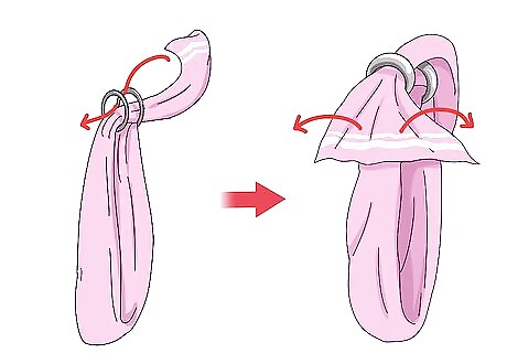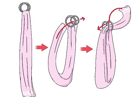 Spread the fabric across the rings. Pull the rails away from each other, and spread the fabric over the rings. Try to make the fabric as flat as possible over the rings. Make sure that the fabric hasn’t been twisted before you put on the sling.