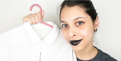 Contrast your lipstick with a preppy outfit. It can be fun to thwart people's expectations by pairing black lipstick with a traditional outfit that would normally be seen with a tame pink lip gloss. If you have a playful sense of humor and are looking for a way to take your prim and proper outfits up a notch, try pairing black lipstick with one of these looks: A soft, sky-blue sweater and a white tennis skirt. A white button-up blouse and a pair of preppy jeans. A pink sundress and black flats.