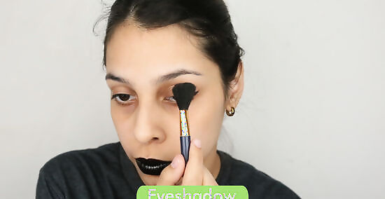Add some colored eyeshadow. Using a hint of color will brighten your face and keep your look from getting too dismal. Apply a light layer of jewel-toned eyeshadow to your lids, brushing the color out toward the corners of your eyes. If you're feeling daring, sweep a little color under your eyes as well.