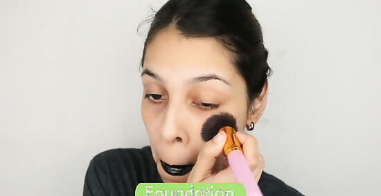 Keep your face clean and neutral. Black lipstick makes a big statement, and you don't want to distract from that by wearing too much other makeup. Create a clean palette by using a neutral foundation the exact color of your skin. Use just the barest hint of blush, bronzer and other face color so as not to overwhelm your black lipstick.