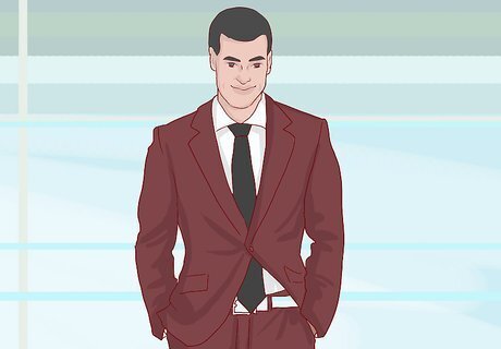 Select trouser-cut maroon pants for a business look. Trouser-cut pants are a good choice for business or formal settings, such as the office or church. You can wear your trousers with a pleat or cuff if you like that look, as well.