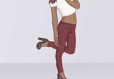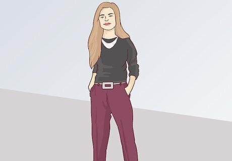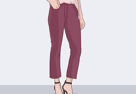Select a slightly cropped length. A slightly cropped pant can look more formal than full-length pants, which often are cut like jeans. Choose a maroon pant that is cropped just above the ankle. Avoid pants that are cropped higher at capri length, as these can make your legs look shorter and are no longer in fashion.