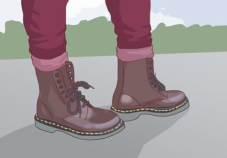 Try maroon skinny jeans for a casual look. Skinny jeans are a casual style that is best suited to everyday wear or going out. Look for a pant that follows the shape of your leg as it tapers down to the ankle. You can experiment with distressed or neutral washes to complement your clothes.