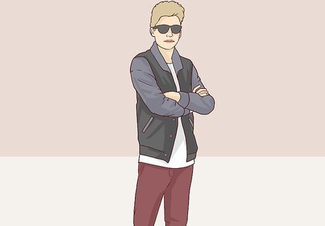 Play up the collegiate vibe of maroon. Maroon is often a school color of universities and colleges. To keep your maroon pants looking casual and young, pair them with a black varsity-style jacket or a casual grey athletic T-shirt. A striped rugby-style shirt would also be a nice complement for an everyday look.