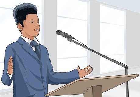 Make sure that your speech stands out. Make it funny, serious, and make sure you tell the crowd who you are and why you are running for that position. Most of all, be confident. Have some backup jokes if you think the crowd is getting bored. It will be easier to do it if you look above their heads so it looks like you're looking directly at them and you're confident. Boost your public speaking skills by joining some type of debate or oral communications class/after school club.