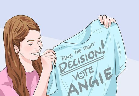 Be creative. Think about talents you have and how you can use them to benefit your campaign. If you're crafty, make buttons with your photo on it, or even tee-shirts with your slogan.