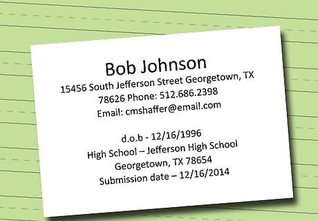 Start with your name. Your name, address, email, phone number(s), high school name, date of birth, and date of submission should be centered at the top of the resume. Make sure that all of the information is current.
