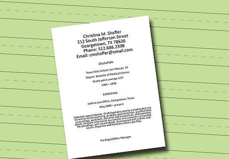 Set an order. Your college resume should always start with Education first. You will also want to include Extracurricular Activities, Leadership, Volunteer Work, Sports, Employment, and Internships. List them in the order based on strength, with the strongest first after Education. You can also adjust the order depending on where you are applying to.