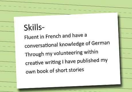 Highlight special skills. Throughout your academic career, you may have become fluent in a foreign language or mastered one or more computer software programs. These are things admissions officers look for and should be included on your college resume.