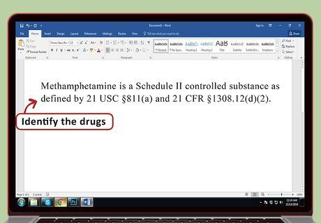 Identify the drugs. You should identify each drug that you think the suspect distributes or possesses. List each one individually, and include the following information along with the name of the drug: The section of the law that identifies the drug as a controlled substance. For example: “Methamphetamine is a Schedule II controlled substance as defined by 21 USC §811(a) and 21 CFR §1308.12(d)(2).” How the drug is used: “Methamphetamine is an addictive synthetic stimulant that affects the central nervous system and can be ingested orally, by smoking, snorting, or injection.” The drug’s impact on the body: “Methamphetamine releases high levels of dopamine which stimulate brain cells and enhances body mood and movement.”