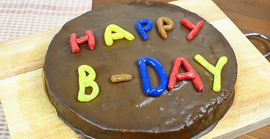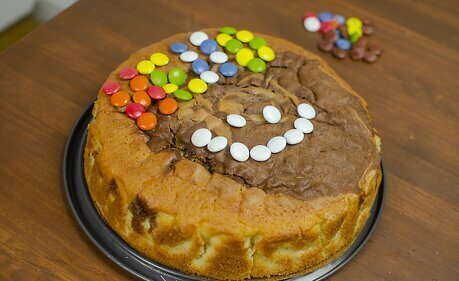 Form your message from small candies or edible cake decorations. If you're not writing an essay, you can form a name or a couple of words by arranging small edibles items in order.