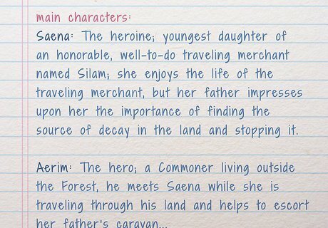 Create memorable characters to populate your world. In most novels the most important character is the protagonist, so flesh them out with recognizable personality traits and thought patterns. Protagonists don't necessarily have to be likable, but they are usually relatable in some way so that readers stay interested in the story. There can also be more than one protagonist. If you have a primary antagonist to counter and conflict with your protagonist, they need to be three dimensional and relatable, even if they’re acting as the “bad guy” in your story. Secondary characters may not need to be fleshed out so fully, but they still need to be humanized to some degree. Envision each character fully, even if you don’t end up utilizing them in great detail. Many novelists describe thinking of their characters as real people, asking themselves what the characters would do in a given situation and doing their best to stay "true" to the characters. Spend time creating profiles for your characters so you can really flesh out what their personalities are like. EXPERT TIP Melessa Sargent Melessa Sargent Professional Writer Melessa Sargent is the President of Scriptwriters Network, a non-profit organization that brings in entertainment professionals to teach the art and business of script writing for TV, features and new media. The Network serves its members by providing educational programming, developing access and opportunity through alliances with industry professionals, and furthering the cause and quality of writing in the entertainment industry. Under Melessa's leadership, SWN has won numbers awards including the Los Angeles Award from 2014 through 2021, and the Innovation & Excellence award in 2020. Melessa Sargent Melessa Sargent Professional Writer Put a twist on everything you write. Melessa Sargent, the President and CEO of Scriptwriters Network, says: “Make all your characters different — don’t do the same thing as others. If you’re writing a doctor, make him unique like House, or Doogie Howser who was different because he was young. Ask yourself why we would want to read about or watch your doctor.”