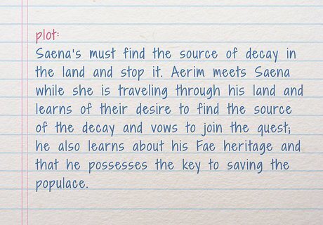 Visualize the broad outlines of your novel’s plot. A novel with good characters but a lousy plot will not resonate with most readers. A common theme in designing a plot is to create conflict. Tension builds until the problem comes to a climax, and then it's resolved in some way. This doesn't mean novels always have happy endings, though! One traditional plot approach is to have rising action (building the details and tension in the story), a conflict (the main crisis of the novel), and a resolution (the final outcome of the crisis)—but this is not the only way to do it. Your novel doesn't have to neatly "resolve" the conflict. It's okay to leave some loose ends undone—if your readers like your novel, they'll be more than happy to tie up those loose ends themselves (speculation, fan fiction, discussion, and the like).