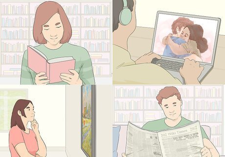 Seek out sources of inspiration for your novel. Writing a novel is a creative process, and you never know when a good idea might come to you. Carry around a notebook and a pen—or the digital equivalent—so you can jot down ideas wherever you go. Scribble down sentences, fragments, single words, or even doodles that will become part of a more complete story. Don't simply wait for inspiration to come to you, however. Seek out examples of exceptional creativity to help spark your own. Your inspiration doesn't necessarily have to be a book—it can be a TV show, a movie, or even traveling to an exhibition or art gallery. Inspiration comes in infinite forms! Think of something from your own life that has inspired, troubled, or intrigued you—how can you explore this topic more fully in a novel?