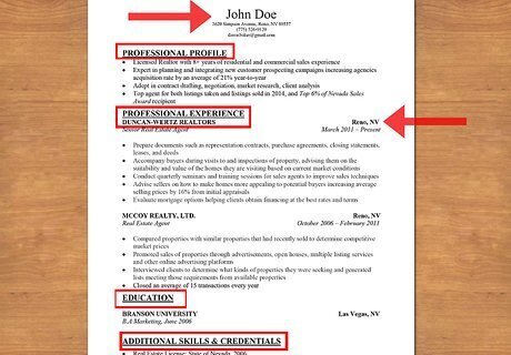 Include the important resume elements. In addition to contact information, your resume should include a professional profile, experience, education, and additional skills and credentials. If you are a recent graduate, consider listing your education before your experience.