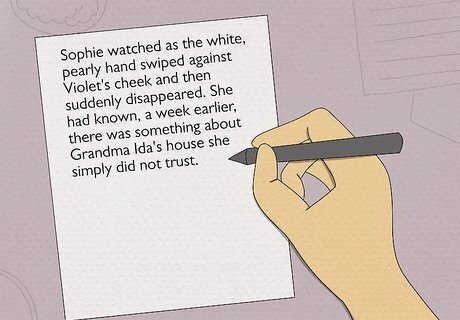 Write a strong beginning. The key to a good horror story is a strong beginning. Your beginning should hint at the story's central problem and introduce one or two characters that will deal with that problem. There are many ways to start a scary story. Some writers might start in the middle of the story and move back, opening with a scene involving the scary element. Others might start off using descriptive language For example, say you're writing a story about two young girls navigating a haunted house. You could begin with a scene with the girls in the thick of their troubles, something like "Sophie watched as the white, pearly hand swiped against Violet's cheek and then suddenly disappeared. She had known, a week earlier, there was something about Grandma Ida's house she simply did not trust." You could also write using language and dialogue that foreshadows the house is haunted. For example, "As the car pulled into their grandmother's mansion, the yard surrounded by black, lacy fencing, Sophie turned to Violet and said, 'Is it just me, or is there something about this place that just doesn't feel right?'" There are, of course, many ways to begin a story, but you should always aim to get the reader's attention. This is especially true if you're writing horror stories for young children, as they will likely be shorter and you have limited space to work with.