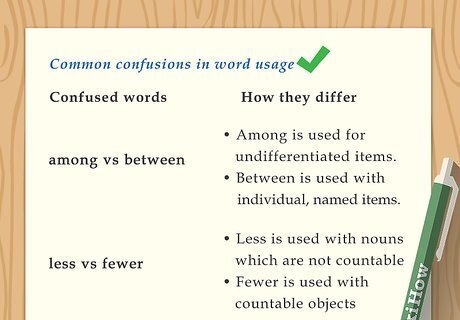 Create a section for common mistakes. In this section, include things like commonly confused words, misused apostrophes, and common comma mistakes. While this section isn't strictly necessary, it can help people write better, particularly if you're creating a guide for people who aren't professional writers. If you want to be very thorough, you can include a large section on the basics of grammar, rather than just common mistakes. However, people are more likely to read shorter texts than longer ones. If you see the same mistake time and again in your organization's writing, make a note about it. That way, you know what to add to your style guide when you're ready to update it.