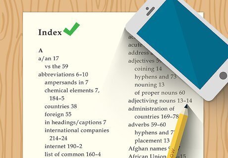 Include an index at the end. While a table of contents is important, an index can be more helpful, particularly in a print guide. It can assist your readers in finding things quickly and easily. Start building the index as you write your guide. That way, you can add words to the index as you go. Include things like common grammar style choices, such as "Oxford comma," and things like "numbers," "abbreviated words," and "tone of voice." Alphabetize the list, and add page numbers so they can find the words.