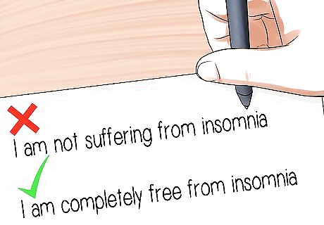 Try positive action language. Focus on what you do want rather than what you want to change. Proactive phrasing (i.e. "I am", "I will", "I can", "I choose") will help you feel closer to your goals. For example, instead of writing “I am not suffering from insomnia”, a better choice may be, “I am completely free from insomnia”. In the second example, we don't see "suffering" but instead "completely free". The same message comes across, but with more positivity.