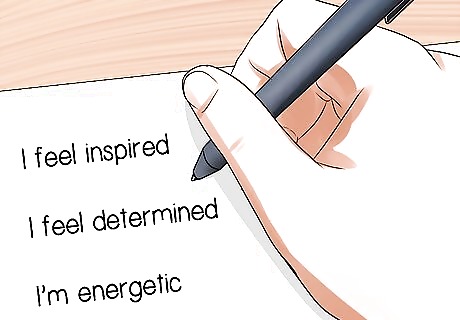 Visualize your goal. When repeating your affirmation out loud, visualize accomplishing the clear, vivid goals you are aiming toward. It may help to close your eyes and focus on how it feels to be on top of your game, be it emotionally or professionally.