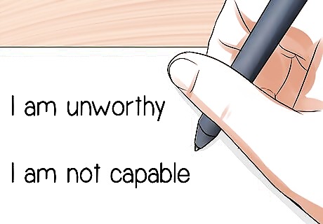 Make a list of what you've always thought of as your negative qualities. Include in your list any criticisms others have made of you that seem to stick to in your mind. Look for the main message that you are receiving when you focus on these negative qualities and critiques. It may be something very broad, for example, "I am unworthy." or "I am not capable." These are the irrational leaps that our emotional selves are prone to make when we disappoint ourselves or others.