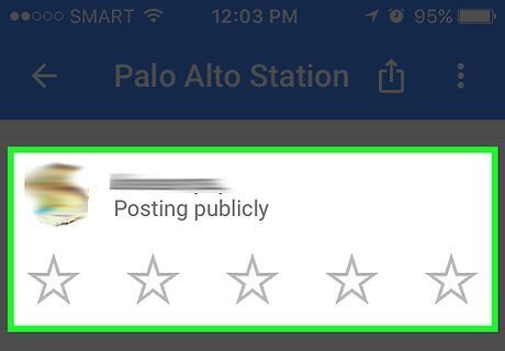 Tap one of the stars. A new screen will pop up with your Google username at the top. If you’re not signed into Google, you’ll be prompted to do so. The number of stars indicates your rating, but you’ll be able to change this when you leave your review.