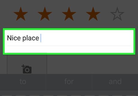 Write a review. Tap the text field below your star rating and write a review using your phone’s keyboard. Your review must be 4,000 characters or fewer.