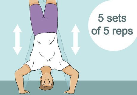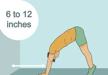 Place your hands 6 to 12 inches (15 to 30 cm) from the wall. Get on your hands and knees so that you're facing the wall with your hands in front of you. Keep your palms either facing forward or turned out 5 to 10 degrees at most. Be sure to keep your hands a bit wider than shoulder width. Always work on a matted surface whenever possible.