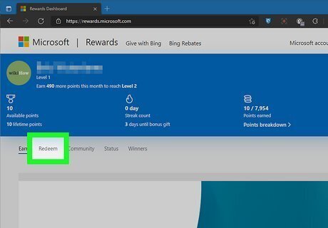 Go to https://rewards.bing.com/redeem in your web browser. When you're signed in to your Microsoft account, this page will show you how many Microsoft Rewards points you have available and a list of rewards. Click REDEEM REWARD below the reward you want to trade your points for offers, gift cards, and more. If you're using the Microsoft Rewards browser extension, click the gold medal icon in your browser toolbar and click the tile at the top. You can save up your Rewards points for a big prize or spend them as soon as you get them. It’s up to you!