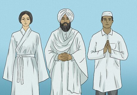 Follow the dress code as closely as possible. If you’re asked to wear white to a funeral, it may seem odd or disrespectful if you come from a culture where wearing black is the norm. Remember, though, that this is a way to pay your respects, so it’s best to follow the guidelines as closely as possible. In most cases, you probably won’t have to buy a whole new outfit. As long as you try your best, the family will likely understand that you’re being respectful.